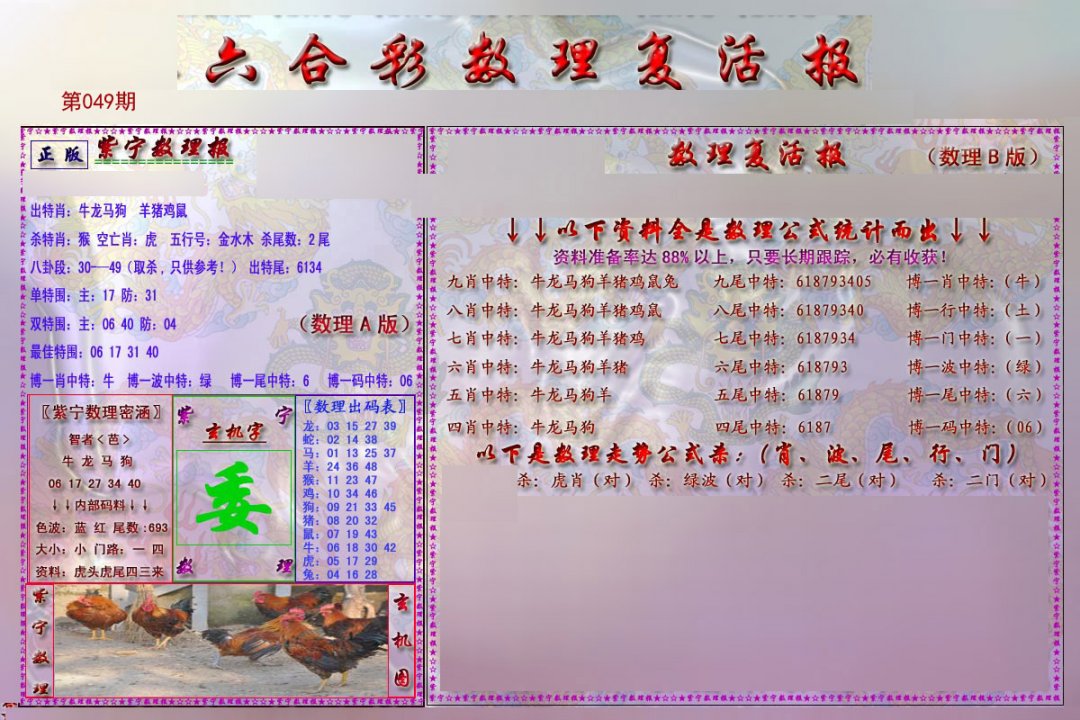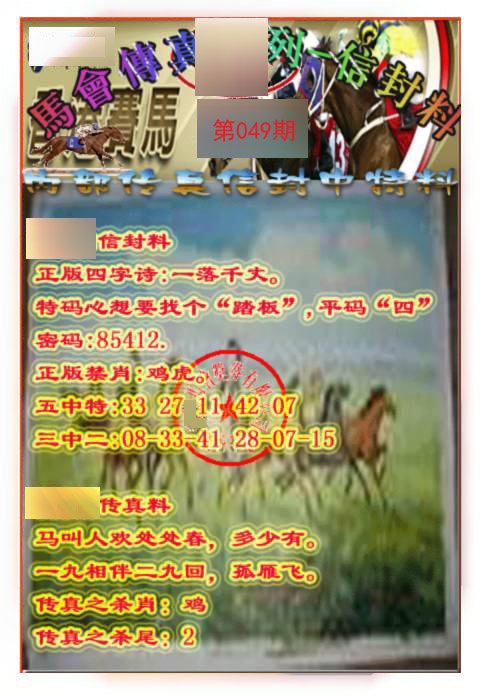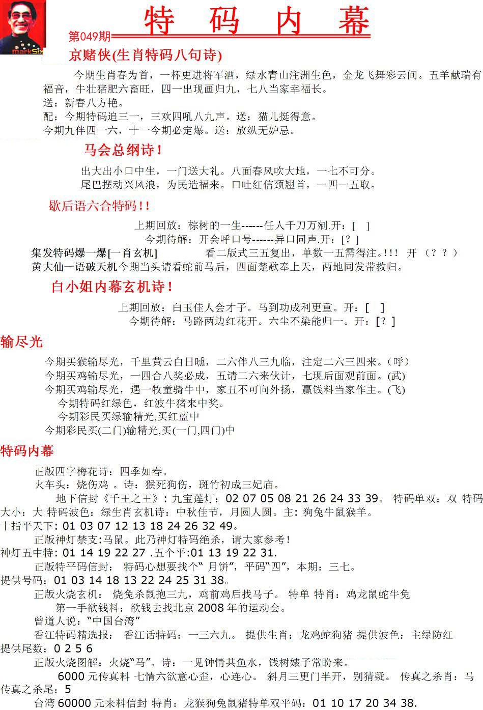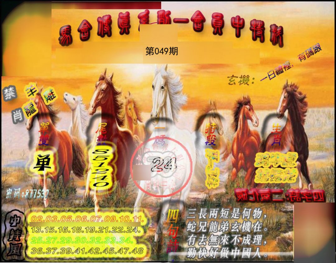 | 049期四肖:鼠鸡猪马 | 四码:31.22.08.49 |