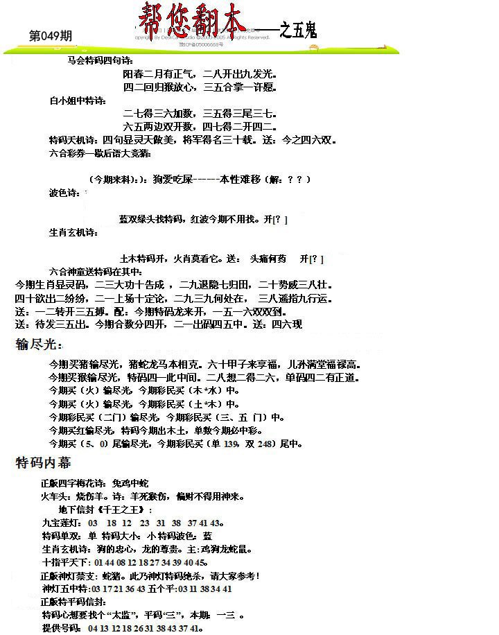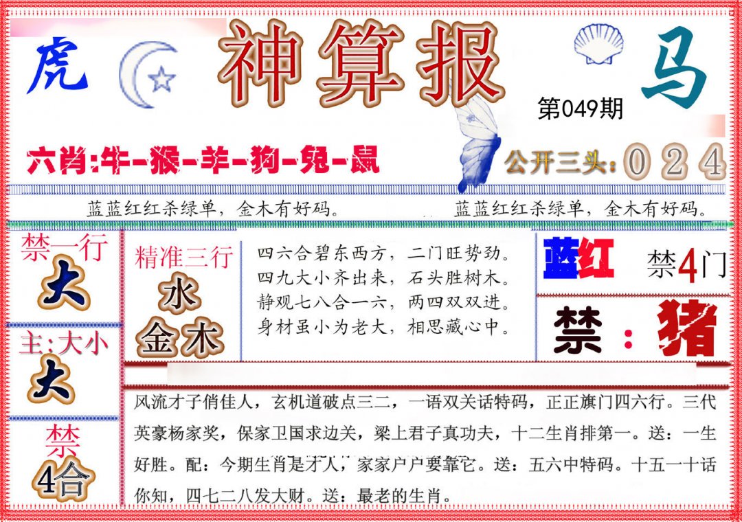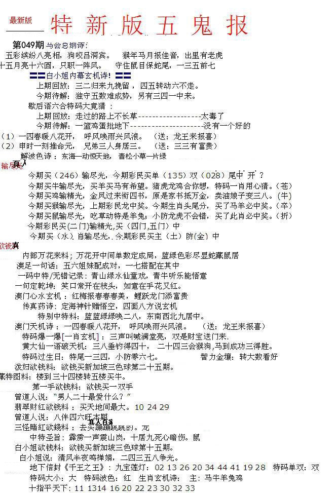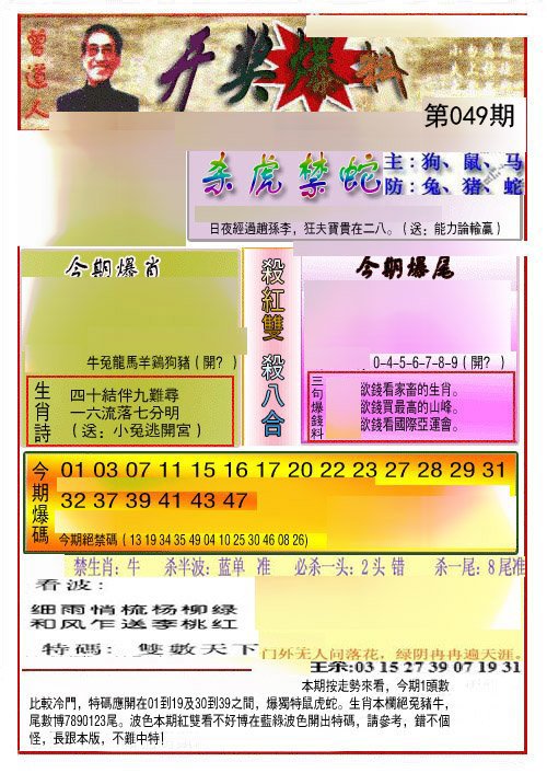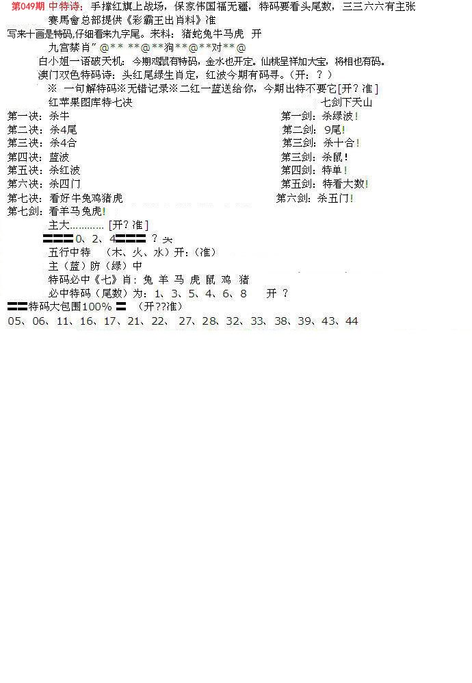 | 049期四肖:鼠鸡猪马 | 四码:31.22.08.49 |