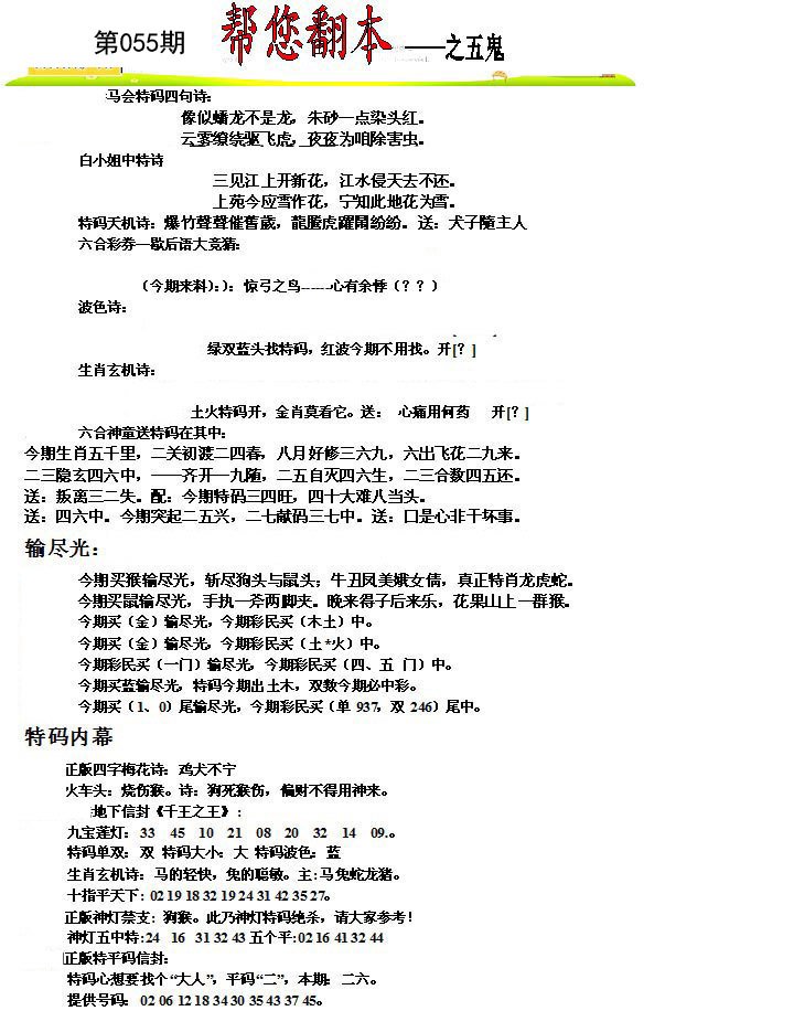 | 055期五肖:狗虎鼠牛猪 | 五码:09.17.07.06.44 |
