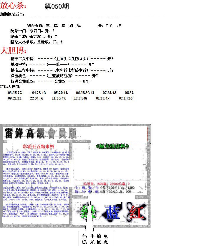| 050期五肖:狗猴鼠鸡兔 | 五码:21.23.43.22.16 |