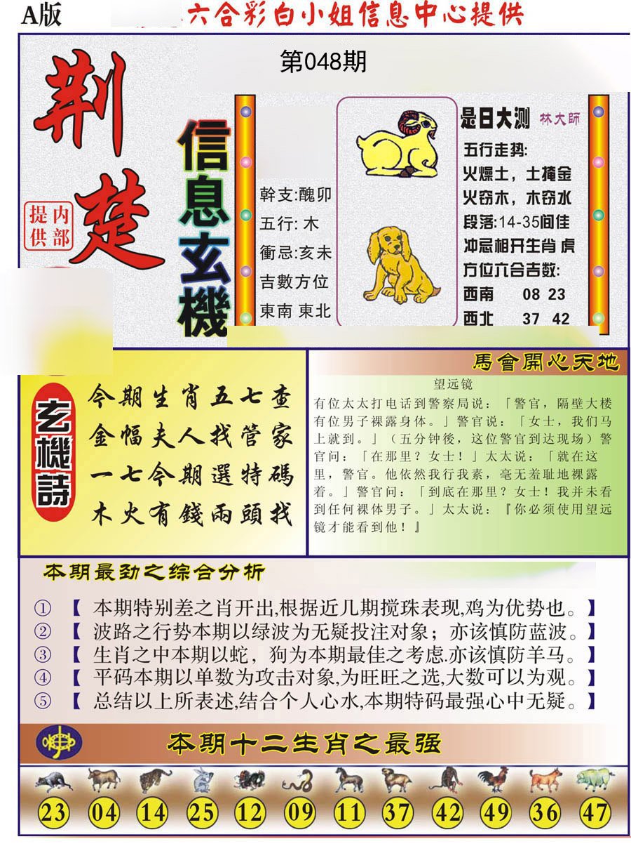 | 048期三肖:猪狗羊 | 三码:31.44.23 |