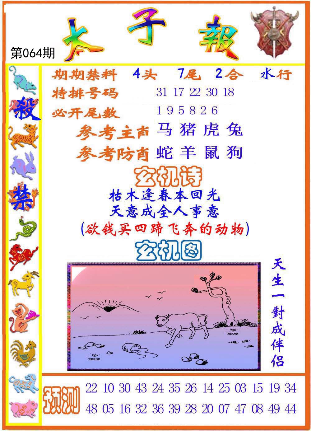 | 064期八肖:鼠蛇鸡兔狗虎龙牛 | 八码:43.02.10.28.21.41.15.06 |