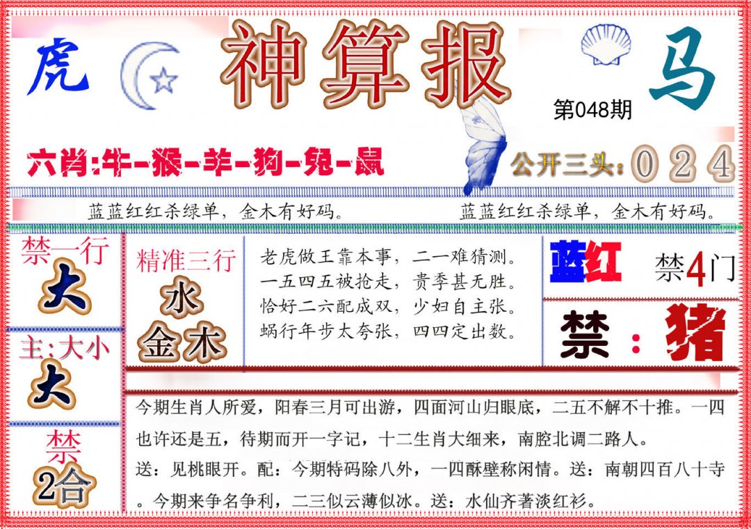 | 048期四肖:猪狗羊龙 | 四码:31.44.23.14 |