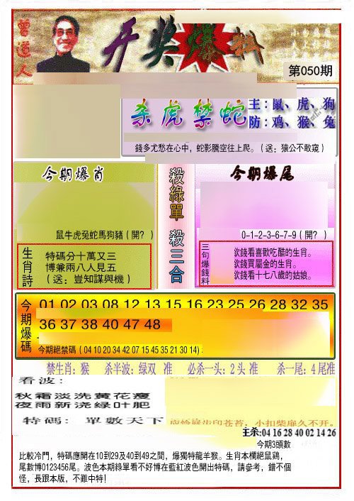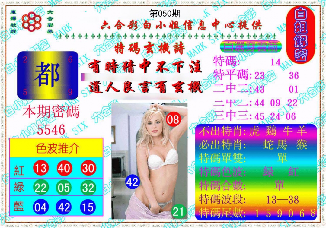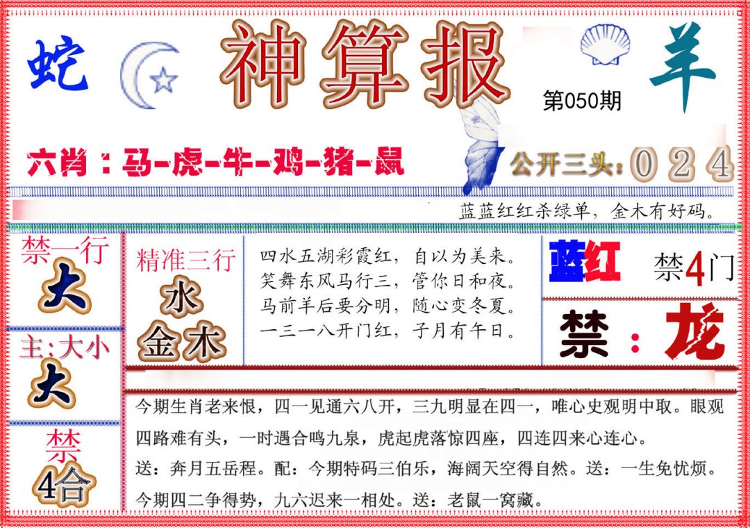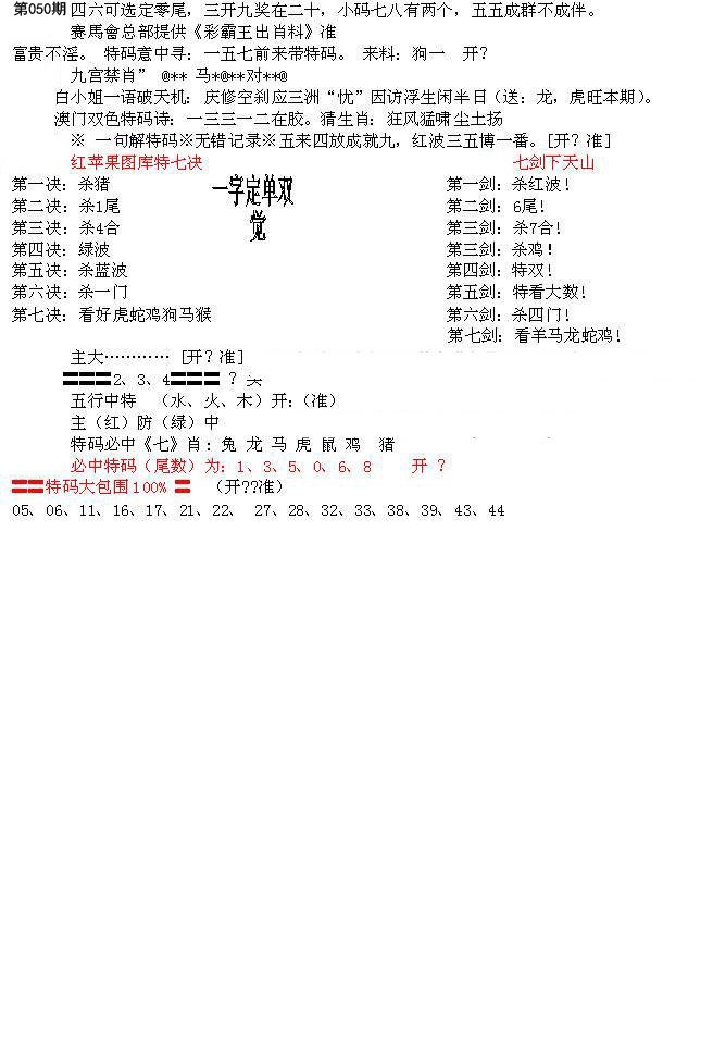 | 050期七肖:狗猴鼠鸡兔蛇马 | 七码:21.23.43.22.16.26.01 |
