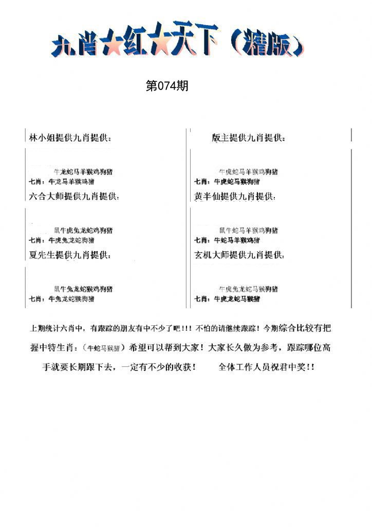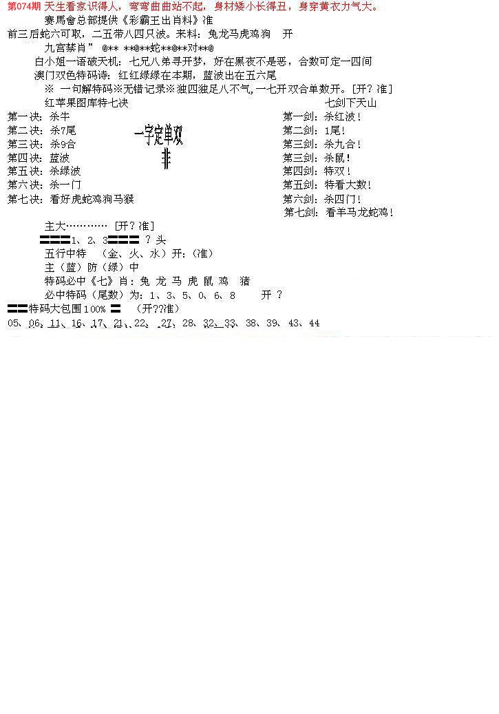 | 072期推荐一肖一码 (????) 信心100% | |