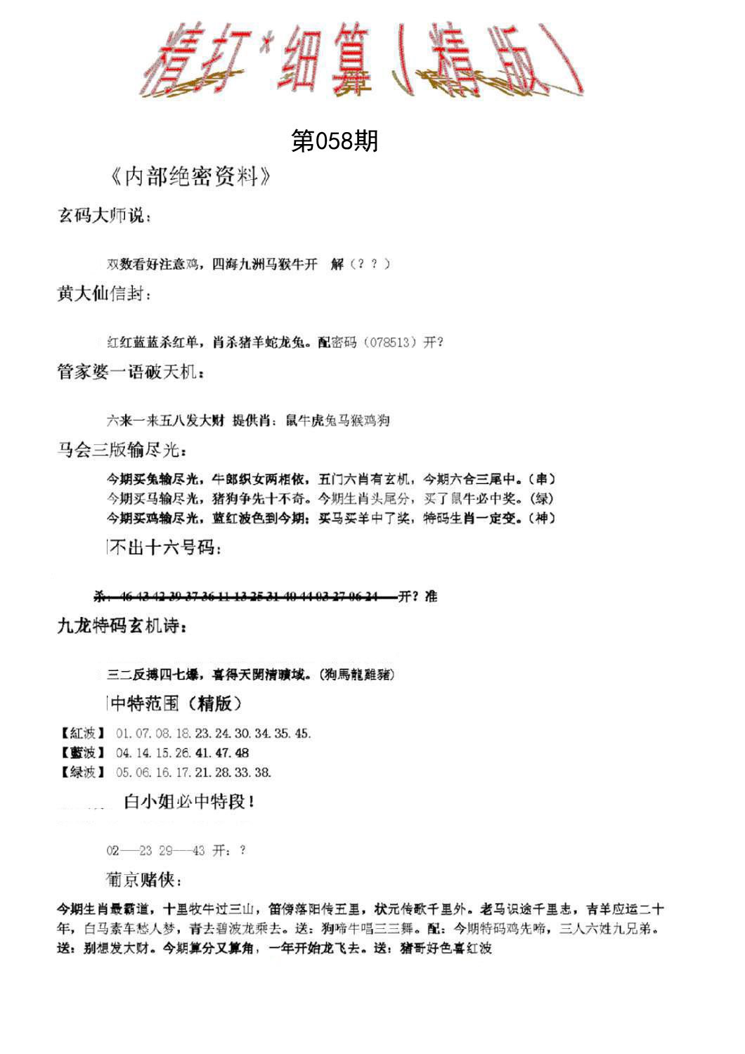 | ★★★★★级【八肖八码】独家资料 | |