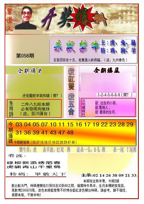 | 057期一肖:鼠 | 一码:07 |