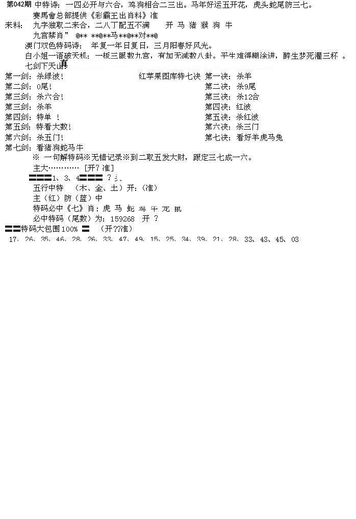 | 040期七肖:鸡鼠狗牛猴蛇马 | 七码:09.30.08.29.34.25.12 |