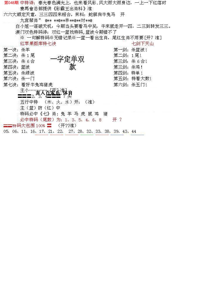 | 048期推荐一肖一码 (????) 信心100% | |